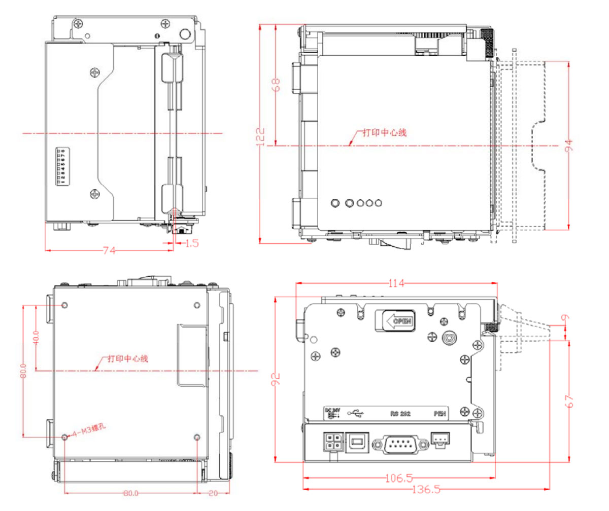 纸张尺寸/Paper Width票宽54mm~83mm,票长200mm/Ticket width 54mm~ 83mm Adjustable, ticket lenght 200mm Max